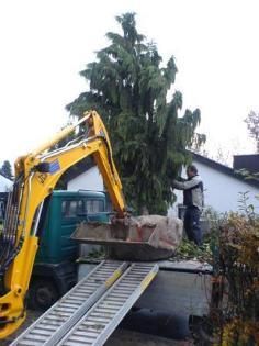 Wir bieten Ihen alles was sie im Bereich Garten brauchenBeratung,Ausführung,LieferungBild links Großbäume verpflanzen